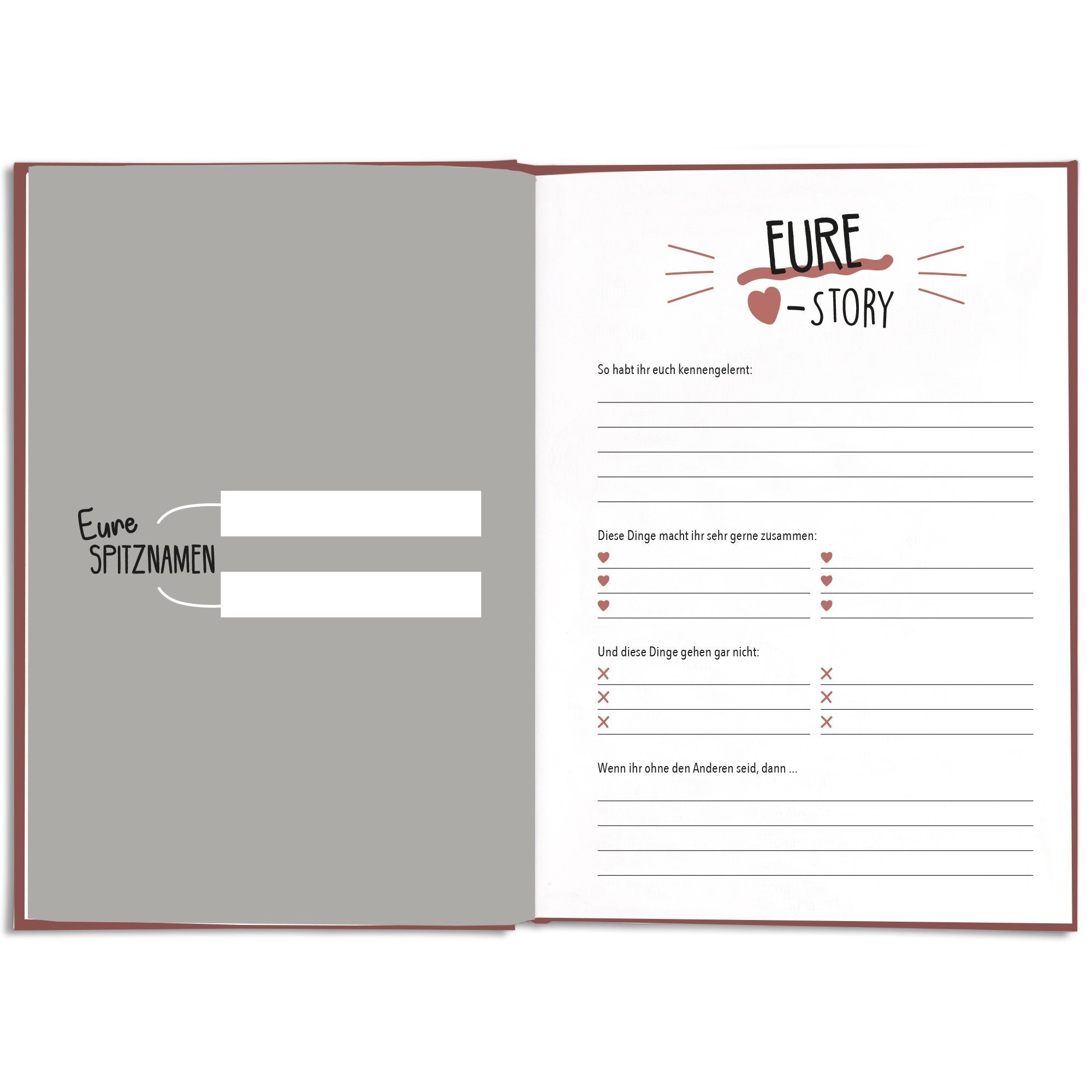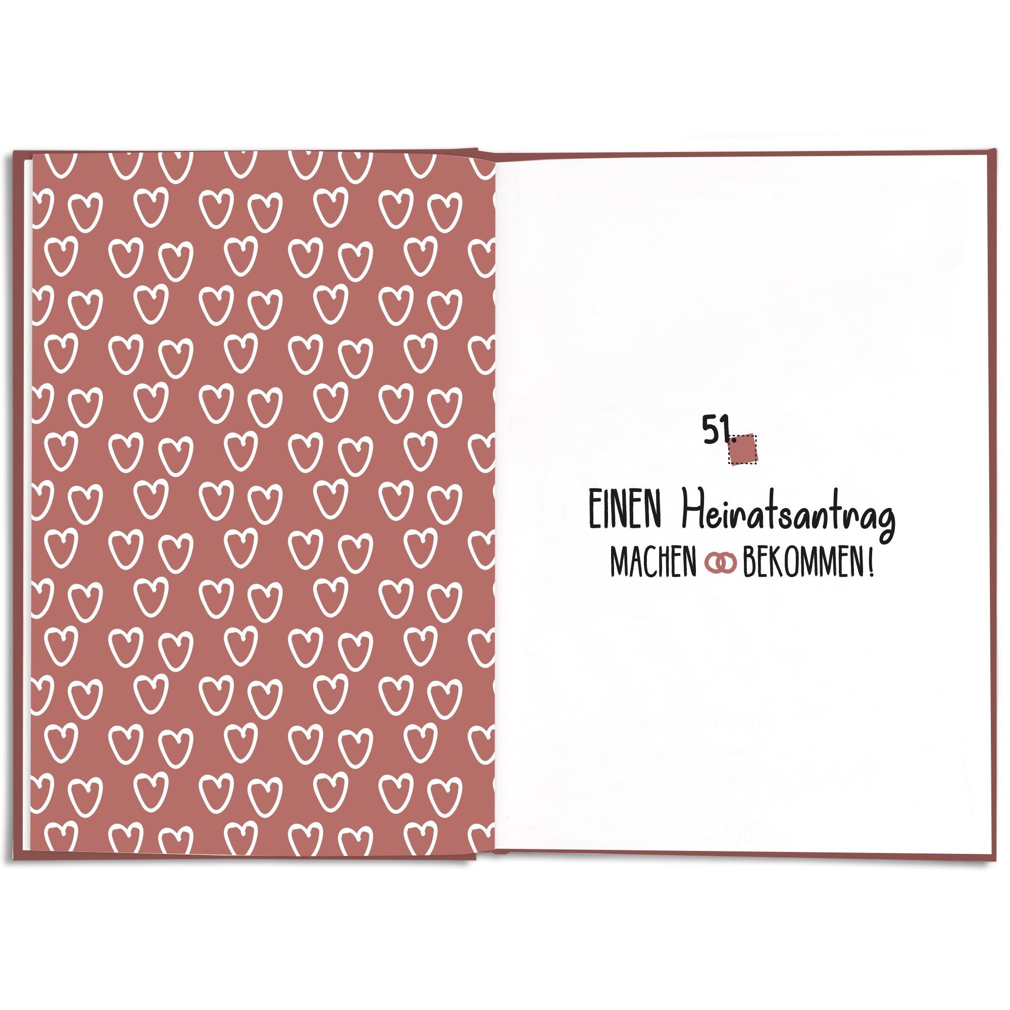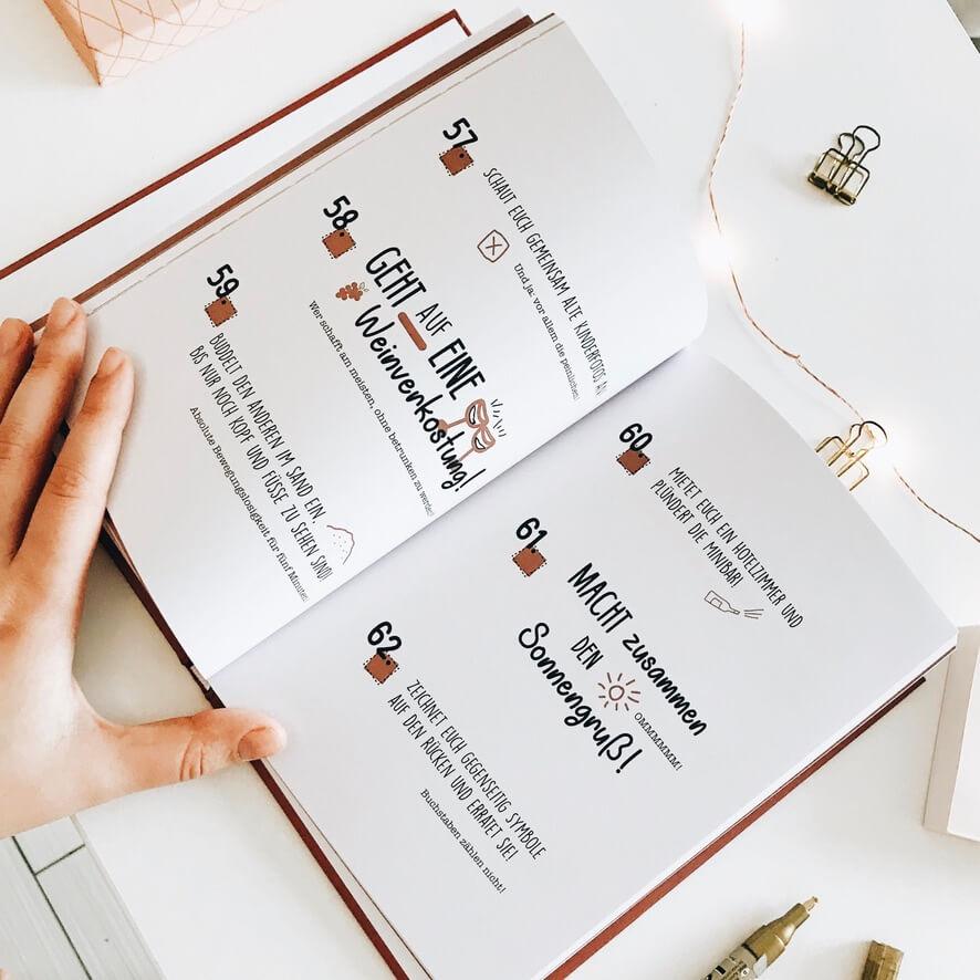 Das Bucket List Buch für Paare ist ein liebevoll gestaltetes Erlebnisbuch voller Ideen, die eure Beziehung stärken. Mit abwechslungsreichen Herausforderungen schafft ihr gemeinsame Erinnerungen, die verbinden und euren Alltag bereichern. Damit ist das Buch ein wundervolles Geschenk für Freundin oder Freund.